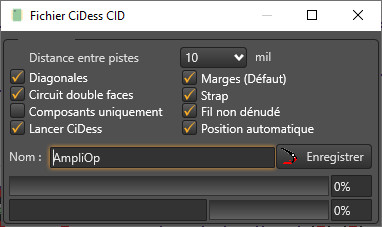 La distance entre pistes est donnée en mil. Si la case Circuit double faces est cochée, le circuit sera généré soit en simple face si cela est possible, sinon en double face. Dans le cas où le nombre de face n’est pas suffisant les liaisons en anomalie sont indiquées dans la fenêtre contrôle de l’application PElectro. C’est à l’utilisateur de CiDess de rajouter les liaisons manquantes. D’autre-part, Les composants PElectro non liés avec CiDess, évidemment, n’apparaissent pas ainsi que leurs liaisons. Si la case ‘Composants uniquement’ est cochée, seulement l’implantation des composants est obtenue, les liaisons n’apparaissent pas. Dans ce cas, l’utilisateur doit effectuer les liaisons avec l’application CiDess. Le Nom est le même que dans l’application PElectro et s’affiche automatiquement. Il peut être modifié. La case à cochée "Lancer CiDess", permet de lancer CiDess si celui-ci est installé. "Marges", ajoute les marges du circuit de conception dans CiDess. "Strap", ajoute si possible des straps en cas de non résolution de la liaison standard par le logiciel de fabrication du PCB. Si le strap n'est pas réalisable, un message d'anomalie est affiché. Si "fil non dénudé" est sélectionné, alors il sera possible de réaliser un strap qui passe au-dessus des composants existants sans risque de court-circuit. Si "Position automatique" est sélectionné alors les composants du circuit de conception ne gardent pas leur place et peuvent être disposés dans l'ordre mais pas avec les mêmes distances donnant un PCB plus compacte. En dessous, apparaît la barre de progression qui indique la génération du circuit pour CiDess. Si l’une des dimensions du circuit PElectro est supérieure à 1600 pixels ou 16000 mils ou si aucun composant PElectro n’est lié à CiDess alors il est impossible de générer le circuit dans CiDess. Le fichier CiDess se trouve généré dans le répertoire de cette application et porte le même nom que dans PElectro avec ‘P-‘ en début du nom. Il faut lancer CiDess est l’ouvrir pour constater le résultat. Des différences entre les deux logiciels (orientation par exemple des diodes, etc…) peuvent apparaître. Il faut vérifier le résultat sans avoir à tout refaire. Lecture d’un fichier CiDess Pour lire un typon CiDess, il faut ouvrir le menu Fichier et cliquer sur ‘Ouvrir autres formats’. La boîte d’ouverture de fichier apparaît.