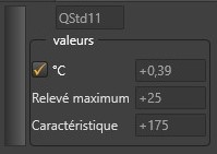 ‘Valeurs’ indique le résultat en degrés Kelvin (°K) si la case à cocher n’est pas cochée et en degrés Celsius (°C) si elle l’est. La barre de progression à gauche du thermomètre correspond à ces valeurs.